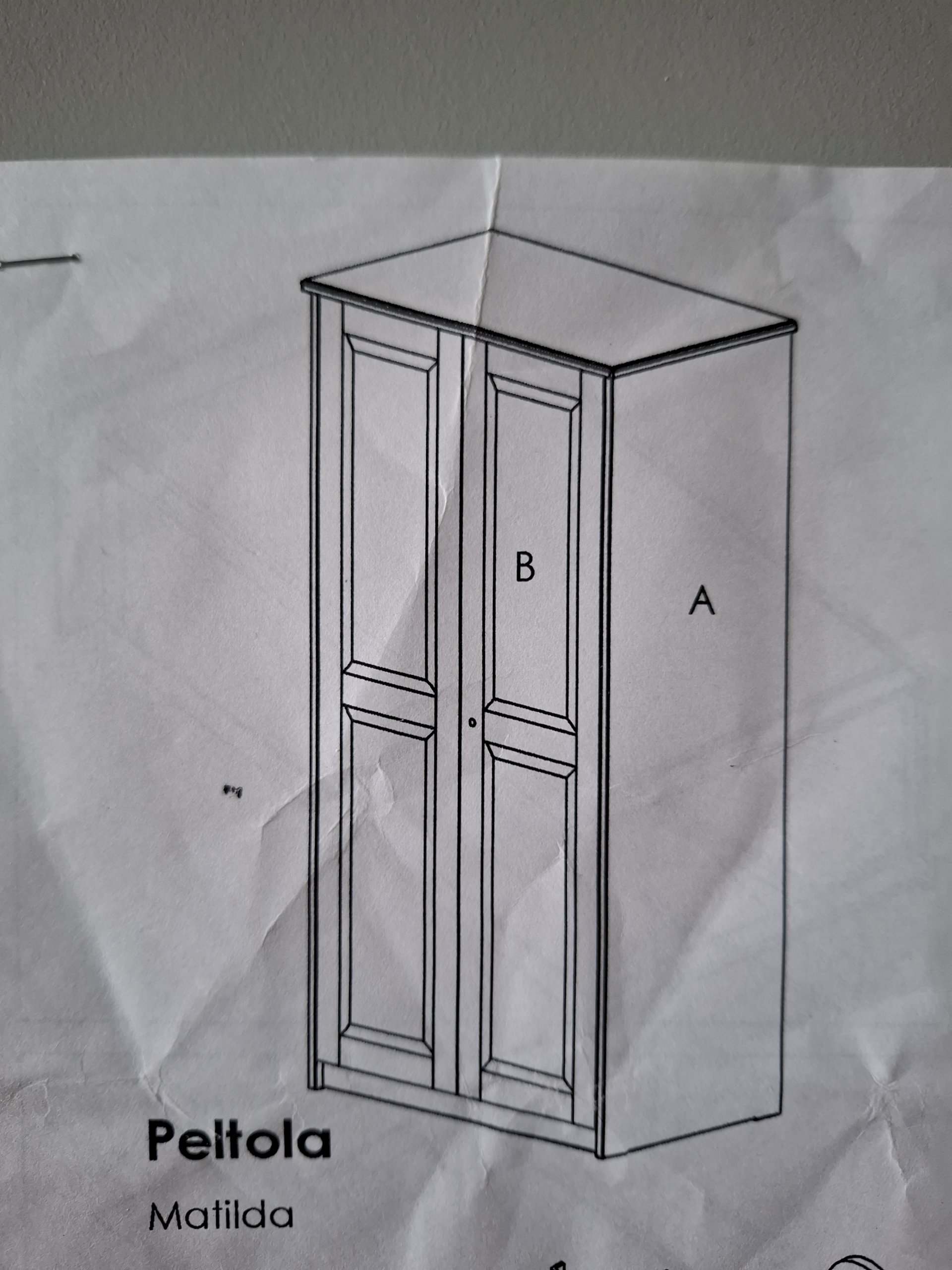 Matilda 2-os. vaatekaappi jossa 4 hyllyä sekä vaatetankotilaa rinnakkain sekä leveä ylähylly.